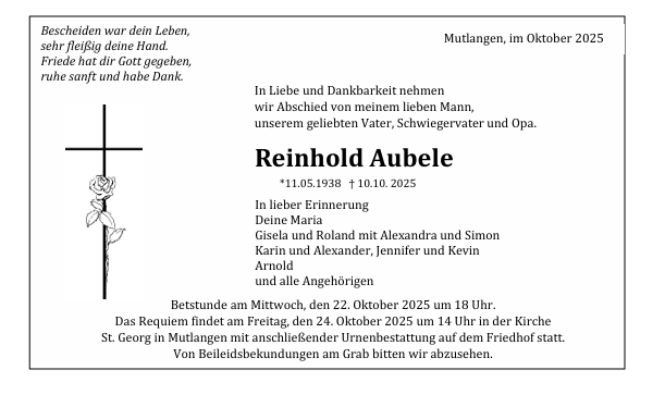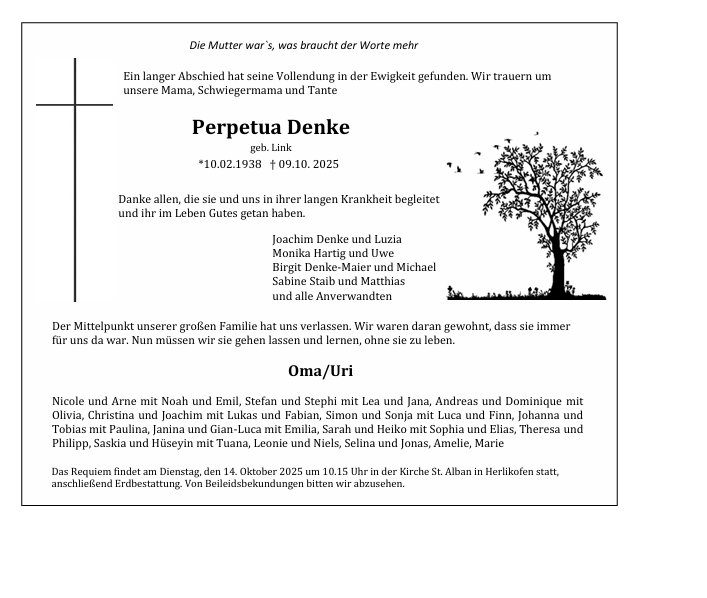 Geboren: 14.10.1935 Verstorben: 25.09.2025