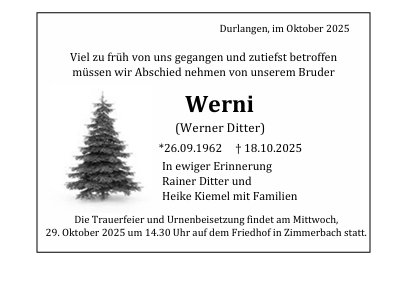 Geboren: 04.09.1962 Verstorben: 10.10.2025