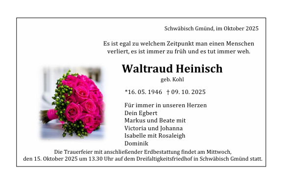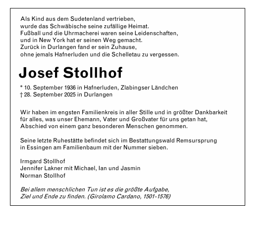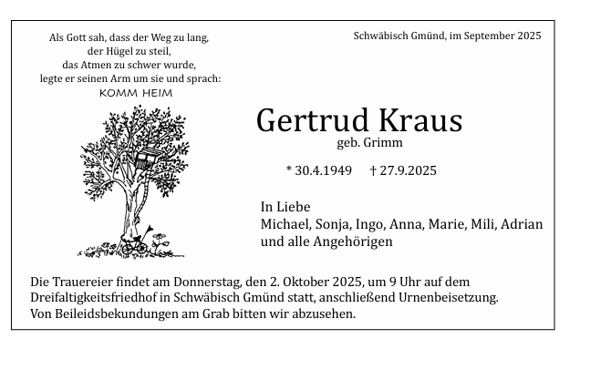 Geboren: 10.09.1936 Verstorben: 28.09.2025
